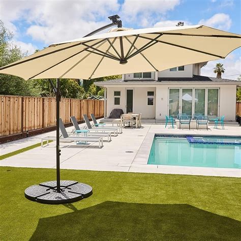 To get the most out of your patio umbrella with base, it's important to choose a model that is durable, stable, and easy to set up. Additionally, consider adding features such as LED lights or tilt mechanisms to enhance your outdoor experience. When using your patio umbrella with base, make sure to secure it properly to prevent it from tipping over in windy conditions. Finally, always be sure to follow manufacturer instructions for cleaning and maintenance to ensure your patio umbrella with base lasts for years to come.